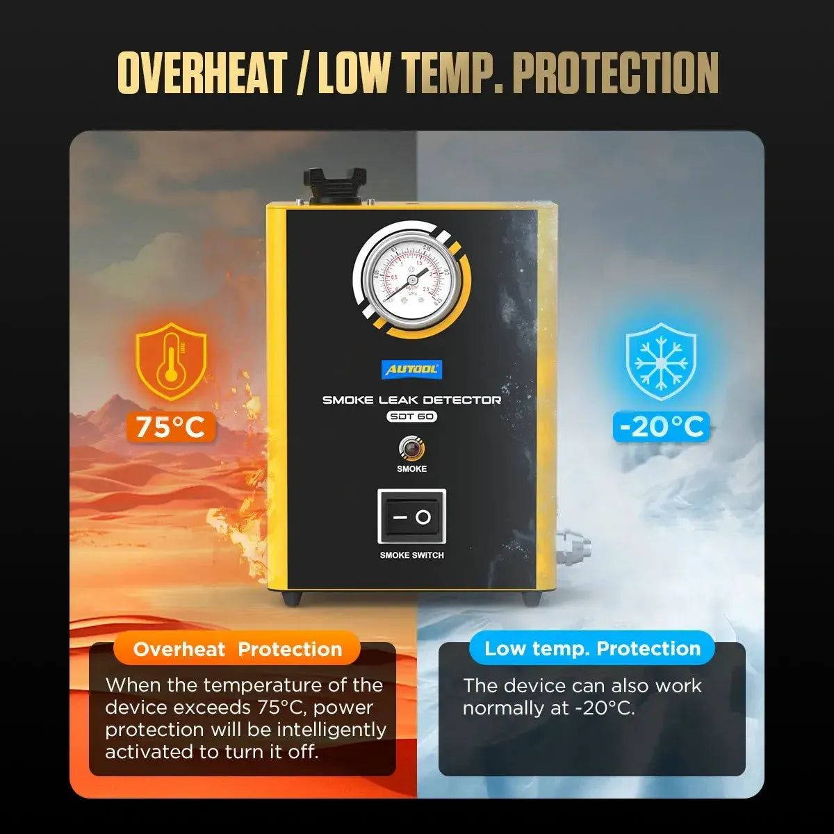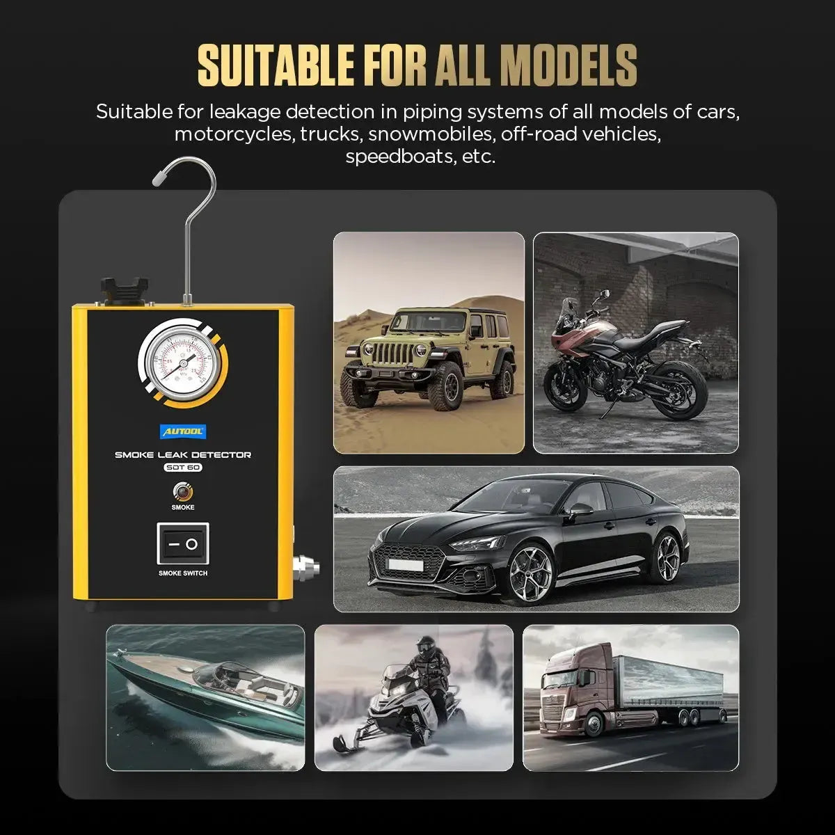 Der Autool SDT60 wird verwendet, um Leckagen in geschlossenen Systemen von Autos, Motoren und anderen Fahrzeugen zu lokalisieren.