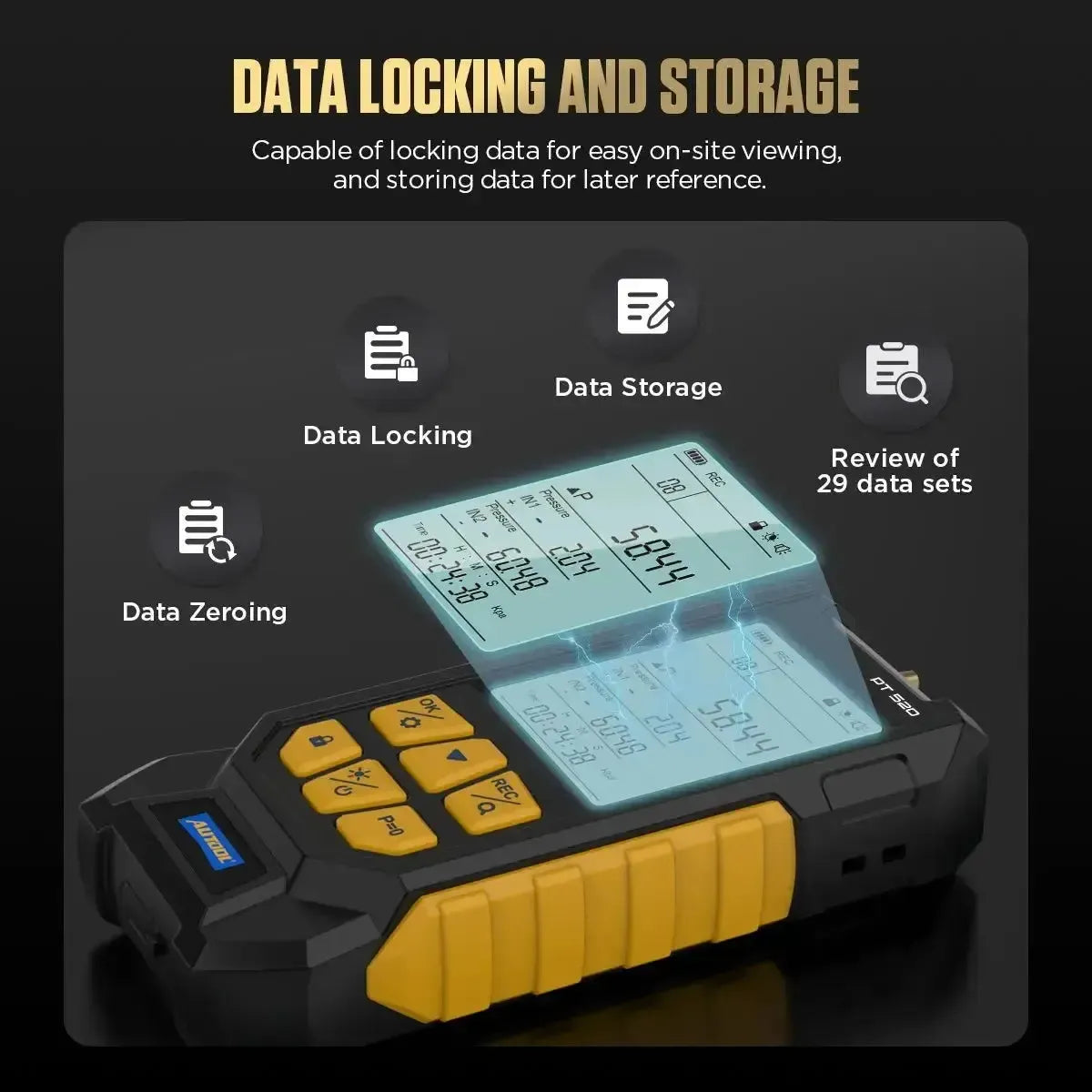 Der Autool PT520 wird zur Diagnose von Drucksystemen in Fahrzeugen und HLK-Anlagen verwendet. Das Gerät misst sowohl absoluten als auch Differenzdruck.