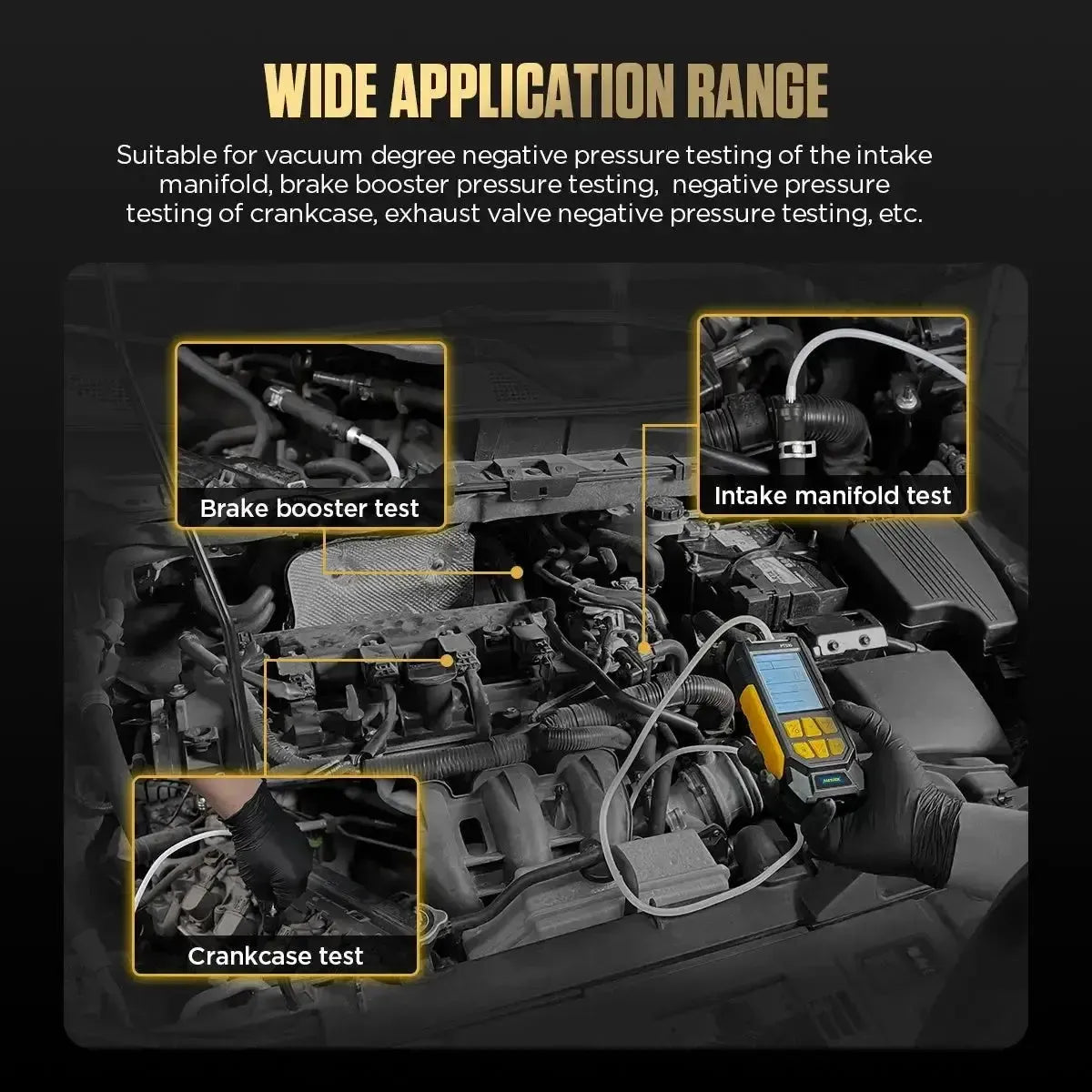 - Diagnosetests: Geeignet zum Testen des Unterdrucks von Ansaugkrümmern, Bremskraftverstärkern, Kurbelgehäuseentlüftung und Auslassventilen.