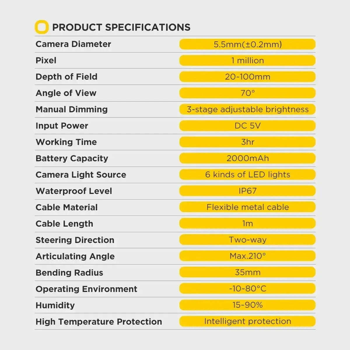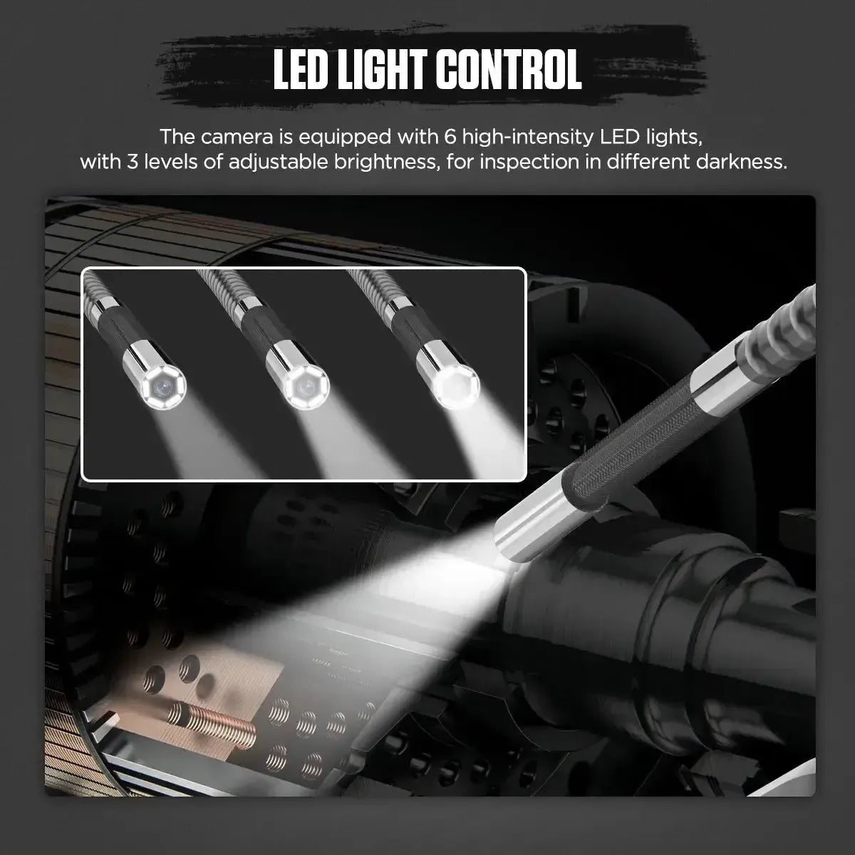 - Verstellbare LED-Beleuchtung: Die Lichtintensität der 6 LEDs kann in 3 Stufen angepasst werden, um Über- oder Unterbelichtung in verschiedenen Inspektionsumgebungen zu vermeiden.