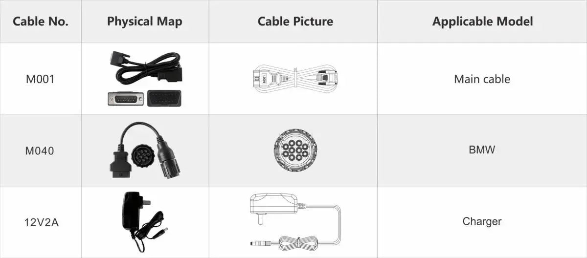 - M003A: Ein multifunktionales Jumperkabel zum Verbinden mit bestimmten Pins an Modulen, wenn ein Standard-Diagnoseanschluss nicht verfügbar ist.